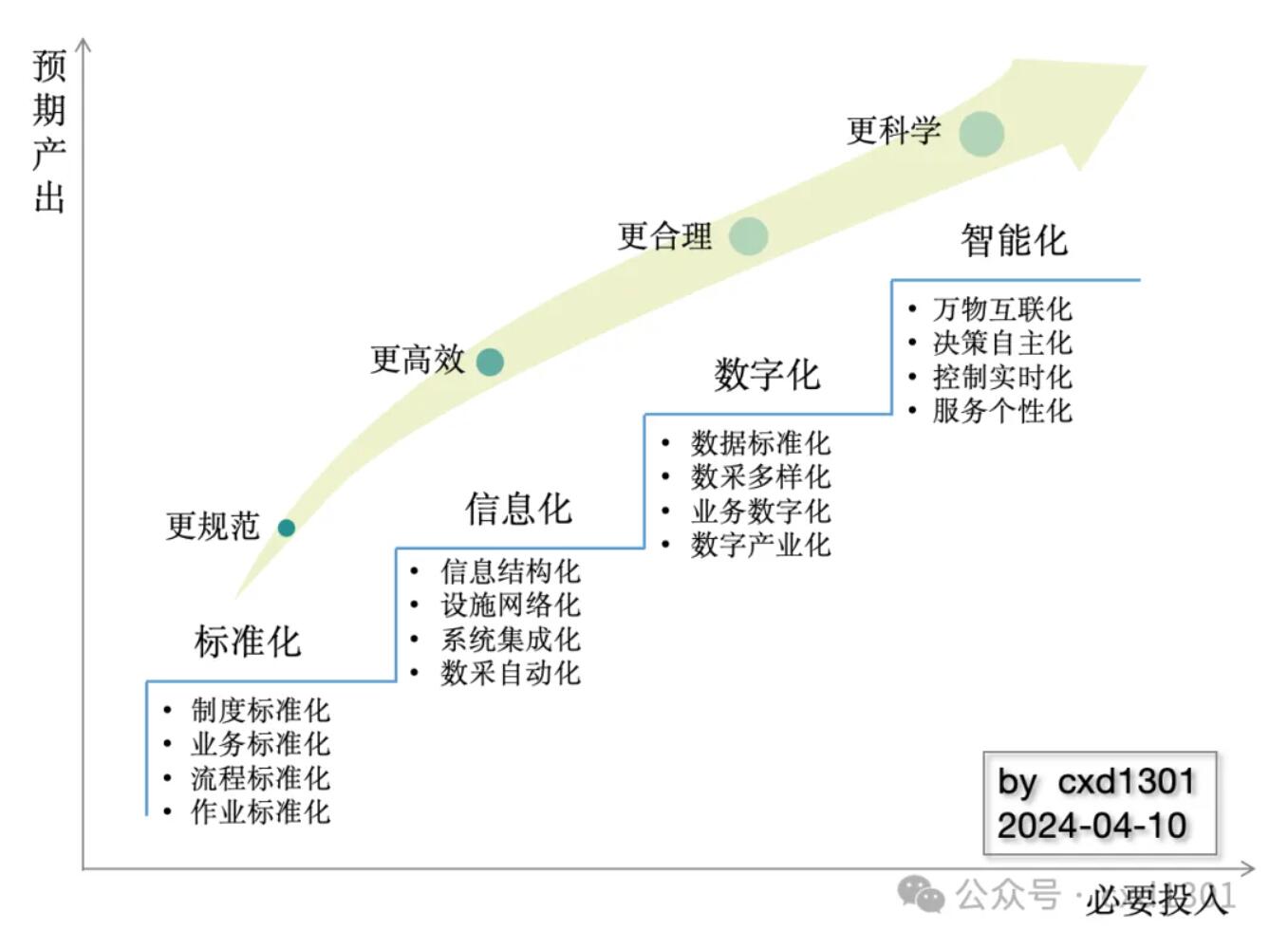 (5)标准化是基础,信息化是工具,数字化是现在,智能化是未来。